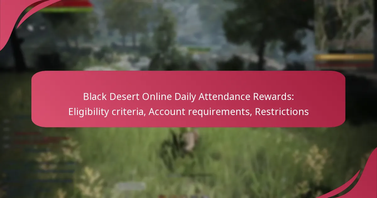 In Black Desert Online, players can earn Daily Attendance Rewards by meeting specific eligibility criteria, including character level, account age, and geographical location. Additionally, account requirements such as verification status and regional eligibility play a crucial role in maximizing these rewards. It is also important to be aware of the restrictions associated with claiming these rewards to ensure a smooth experience.