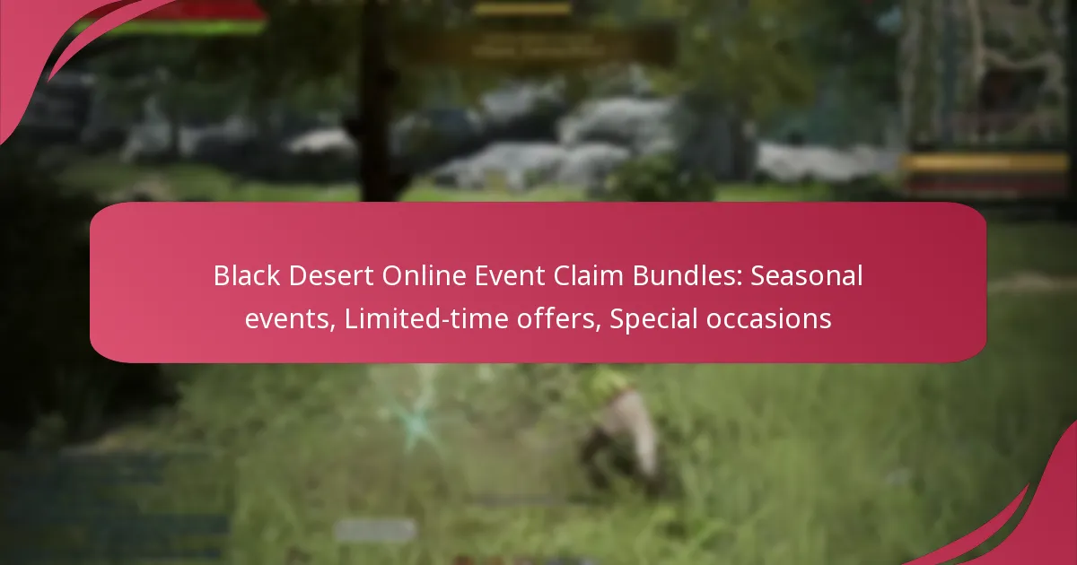 Seasonal events in Black Desert Online often feature event claim bundles that provide players with unique rewards and bonuses. These bundles are typically available for a limited time and coincide with holidays or special occasions, enhancing the gaming experience with exclusive items and benefits.